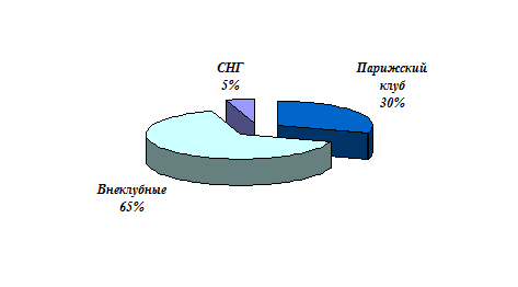 Россия сейчас имеет дело с тремя группами кредиторов: официальные кредиторы, в основном входящие в Парижский клуб; коммерческие банки или Лондонский клуб; коммерческие фирмы и банки, входившие ранее в Токийский клуб. Совокупный долг этим трем группам составляет почти 70 млрд. долл. без процентов.
