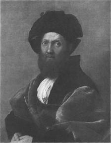 Один з найзнаменитіших портретів Рафаеля — «Портрет графа Бальдассара Кастільйоне». Він знаходиться у Луврі навпроти «Мони Лізи» да Вінчі. Портрет копіювали Рембрандт, Рубенс і Матісс [81].
