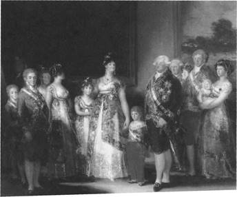 Один з групових портретів того часу — «Портрет сім'ї короля Карла IV» [11]. У центр Гойя вмістив королеву. Вона обійняла дочку і тримає за руку сина. Карл IV в парадному мундирі стоїть декілька попереду, його обличчя байдуже. У лівій частині картини фігура в блакитному костюмі — це спадкоємець престолу, кронпринц Фердинанд. Поруч з ним, відвернувшись від глядача, стоїть його наречена. Такий ракурс художник обрав, щоб не показувати нам її обличчя — в момент написання цього групового портрета і сам Фердинанд ні разу не бачив її.