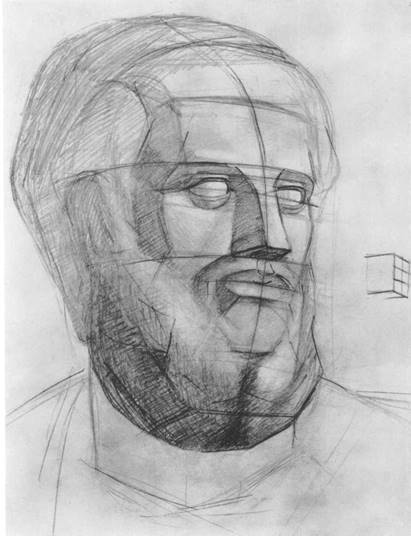 При вивченні закономірностей будови форми голови і правил її зображення на площині паперу школяреві необхідно перш за все оволодіти методами аналізу і зображення загальної форми голови, на основі яких протікає первинний етап побудови зображення. Хоча цей етап роботи в академічному малюнку триває дуже короткий час, учень повинен не тільки зрозуміти його зміст, але і засвоїти на практиці за допомогою вправ.
