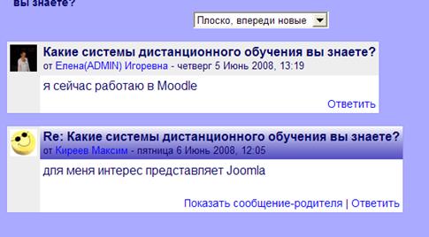 Модуль «Дискуссионные форумы» является одним из важнейших - именно в нём происходит большинство дискуссии. Форумы могут иметь различную структуру и создавать возможность для каждого поста участниками. Посты могут просматриваться в разных форматах и могут иметь разный формат. Участники, которые являются субскриментами Форум, получают по электронной почте копию каждого нового поста. Преподаватель может навязать (продиктовать) субскрипцию всем участникам.