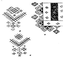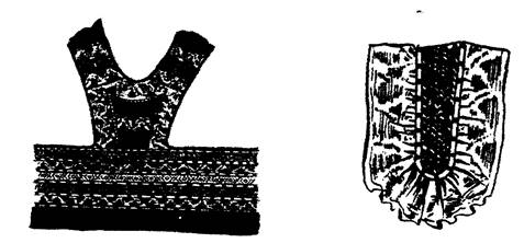 В отличие от повседневных, погребальные рубахи всегда старались делать цельными, пропускными. Это было связано с представлением о не желательности поперечных швов в такого рой'" одежде. Инновации наших дней - укладываемые поперек плеча складки-защипы, свидетельствуют о живучести таких поверий [31].