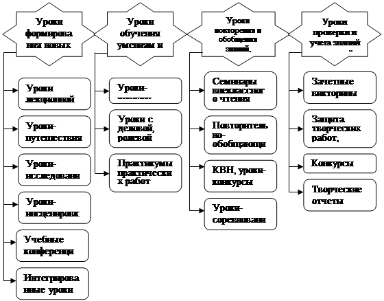 Г.К. Селевко предлагает рассматривать нестандартные формы урока как «технологии». Он употребляет термин «нетрадиционные технологии урока» и характеризует их как «основанные на усовершенствовании классических форм урочного преподавания нетрадиционных структурах и методах» [15, 324].