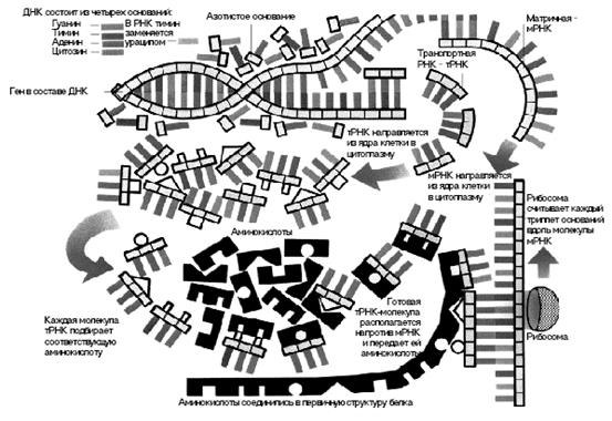История открытия нуклеиновых кислот, их химический состав. Характеристика пуриновых и пиримидиновых оснований. Два типа нуклеиновых кислот. Различие между ДНК и РНК. Центральный постулат молекулярной биологии – ДНК–РНК–белок – и его развитие. Строение и функции ДНК. Содержание ДНК в организме и локализация ее в клетке. Размер и форма молекул ДНК. Первичная структура ДНК. Успехи и перспективы расшифровки структуры геномов микроорганизмов, растений и животных. Проект «Геном человека». Вторичная структура ДНК. Комплементарность азотистых оснований и ее значение для воспроизведения структуры генов. Полиморфизм вторичной структуры ДНК. Третичная структура ДНК. Сверхспирализация ДНК. Избыточность и комплементарность молекул ДНК. РНК и их классификация. Сравнительная характеристика видов РНК по их структуре и функциям.