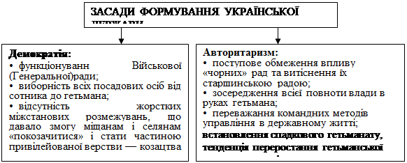 7. Складіть схему «Управління в Українській козацькій державі – Гетьманщині».