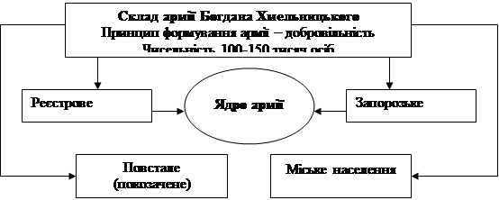 Створити з повсталих селян і козаків боєздатну армію, яка боролася за визволення України, Б. Хмельницький зміг, спираючись на своїх сподвижників. Серед них були представники різних станів -козацтва, української шляхти, міщан. У роки війни вони стали талановитими воєначальниками, будівничими держави, дипломатами.