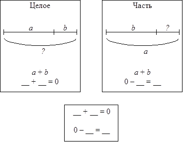 • В первом задании учащиеся, восстанавливая смысл действий сложения и вычитания, определяют, какой компонент выражает часть, а какой — целое.