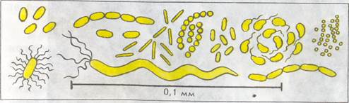 Бактерии – это мельчайшие прокариотические организмы, имеющие клеточное строение. Величина большинства бактерий колеблется от 0,2 до 1,3 мкм. Форма бактерий достаточно разнообразна.