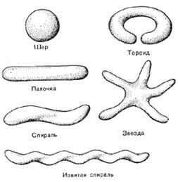 Форма бактерий [13]. В зависимости от формы клетки бактерии различают шарообразные кокки, палочковидные бациллы, изогнутые в виде запятой вибрионы, спиралевидные спириллы. Очень часто бактерии образуют скопления в виде длинных изогнутых цепочек, групп и пленок. Некоторые бактерии имеют один или несколько жгутиков. Среди бактерий есть подвижные и неподвижные формы. Подвижные передвигаются за счет волнообразных сокращений или при помощи жгутиков.
