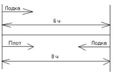 Какова же при этом будет деятельность учеников? Очевидно, что они будут просто рассматривать изображенные фигуры. Но эта деятельность совершенно не связана с той, которая достигает цели обучения: в данном случае выделение общего способа решения задач «движение навстречу друг другу». Поэтому такой наглядный материал не только не помогает осуществлению цели обучения, а мешает этому. В этом случае лучше использовать схему: