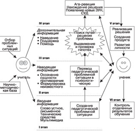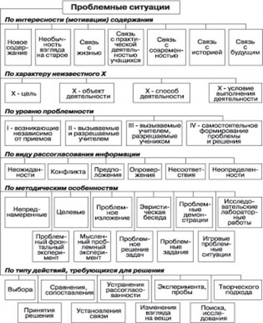 Под проблемным обучением В.Оконь понимает " совокупность таких действий, как организация проблемных ситуаций, формулирование проблем, оказание ученикам необходимой помощи в решении проблем, проверка этих решений и, наконец, руководство процессом систематизации и закрепления приобретённых знаний" [27].
