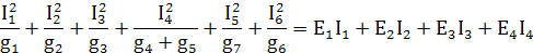Для этого складываем мощности на резисторах и сравниваем их с мощностями источников. Т.е. ![]()