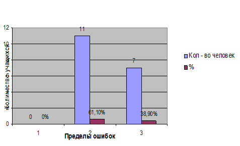 График 3. Количество ошибок, допущенных учащимися, при выполнении методики Мюнстенберга (повторная диагностика)