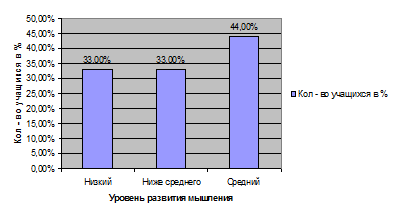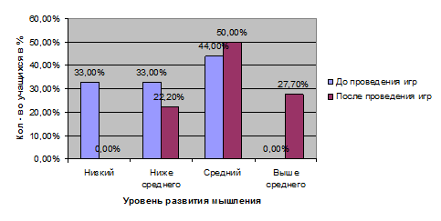 А по выявлению изменений в уровне развития мышления учащихся получили следующие результаты:
