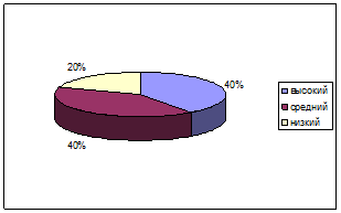 Таким образом, по результатам выполнения задания №1 мы определили, что лишь 2 ученика(20%) достигли высокого уровня. Четверо учеников(40%) находятся на среднем уровне и четверо(40%) на низком уровне.