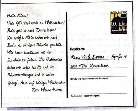 -Ihr musst die Postkarte unterschreiben. Zuerst lesen wir den Muster und dann unterschreiben euere Postkarten.