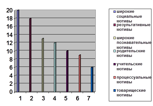 У детей, поступающих в школу, преобладают широкие социальные мотивы, отражающие внутреннюю позицию школьника, связанную с потребностью ребенка занять новое положение среди окружающих и выполнять связанную с этим серьезную общественно значимую деятельность [6].