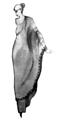 Подгибают ткань и прикладывают ее к плечу, проводят до противоположного бока под проймой, оставляя свободным второе плечо. Затем накладывают две складки (драпированные): одну от плеча до груди. Лишнюю ткань по боковому срезу отрезают, обеспечивая небольшое прилегание левой части переда. | ![]() |