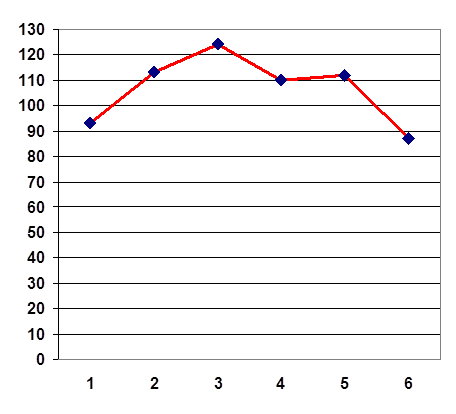 | 87 | 112 | 110 | 124 | 113 | 93 | Общее количество баллов | |||