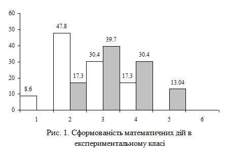 У дослідженні застосовувалися наступні методи: теоретичний аналіз психолого-педагогічної і методичної літератури; бесіда, опит, аналіз результатів робіт учнів; застосування завдань, призначених для визначення у учнів рівня загальних математичних умінь.; експеримент: