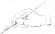 Спочатку горизонтальною лінією ділимо аркуш на дві рівні частини. Вище і нижче цієї лінії на певній відстані проводимо ще по 3 горизонтальних лінії. Так у нас утворилася смужка, в якій і буде орнамент. Тепер набираємо на пензель фарби і на клаптику паперу вправляємося в малюванні товстих і тонких ліній. Тонку лінію дістаємо, легко доторкуючись загостреним кінцем пензля до паперу (товсті лінії утворюються, коли сильніше притиснути пензель). Тепер розміщуємо елементи орнаменту в смужці. Учитель демонструє ще 2-3 зразки орнаментів, виконаних з ліній.