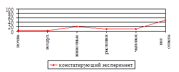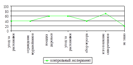 Данные, полученные на этапе констатации, говорят о необходимости целенаправленного педагогического влияния на процесс экологического образования и воспитания младших школьников, послужили основой для разработки соответствующей системы внеклассных мероприятий.