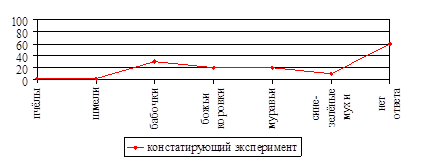 На вопрос "Какие насекомые появляются весной первыми?" получены следующие ответы: пчёлы (45%), шмели (60%), бабочки (60%), божьи коровки (75%), муравьи (45%), сине-зелёные мухи (65%). Не смогли ответить 20% детей. Как показывают результаты анкетирования (рис.14), целенаправленные систематические фенологические наблюдения под руководством учителя способствовали расширению знаний учащихся по данному вопросу.