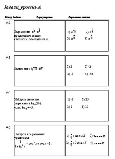 Так как одной из целей ЕГЭ является аттестация школьников по курсу алгебры и начал анализа Х-ХI классов, и программы вступительных экзаменов в вузы содержат обширный материал по этому курсу, то значительную часть экзаменационной работы составляют задания разного уровня сложности, проверяющие уровень усвоения материала курса алгебры и начал анализа. Остальные 4 задания проверяют усвоение стереометрии и материала основной школы, традиционно проверяемых на вступительных экзаменах в вузах (проценты и пропорции, арифметическая и геометрическая прогрессии, планиметрия). Результаты выполнения этих «абитуриентских» заданий не учитываются при выставлении аттестационной оценки [8].