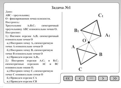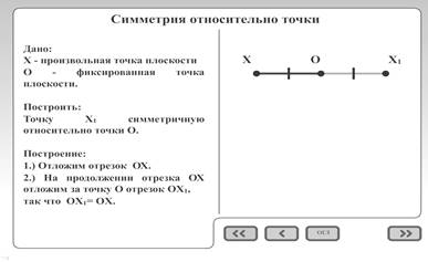 Следующие четыре сцены посвящены теме «симметрия относительно точки». В этих сценах идет последовательное изложение материала, а основной упор сделан на алгоритме построения.