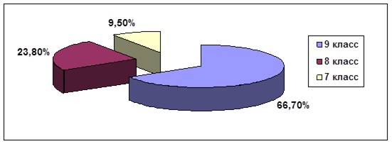 Из проведенного исследования следует, что большинство учеников осуществили свой профессиональный выбор в 9-м классе – 66,7%, 23,8% в 8-м классе, а 9,5% еще в 7-м классе.