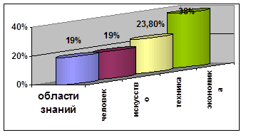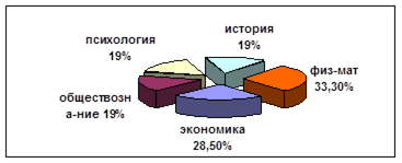 Наиболее важным при выборе профессии для большинства учеников является возможность хорошо заработать 57,14%, для 38% приоритетным является соответствие работы личным возможностям, такое же количество учащихся как основу выделяют интерес, творчество в работе, 23,8% воодушевляет мысль о высоком социальном статусе профессии, и лишь 19% школьников хотят принести пользу обществу. В старшей школе реализуется профильное обучение. Уже несколько лет осуществляется работа по 3-м основным профилям: физико-математический, химико-биологический и гуманитарный. В прошлом году в качестве дополнительных предметов были введены экономика и медицина. Это решение вполне оправданно, т.к. тестирование, проведенное в 9В классе, свидетельствует о высоком интересе учеников к предмету экономика.