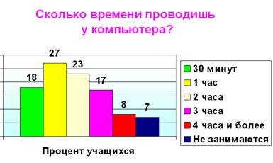 | 15 | Продолжительность непрерывной работы за ПК | для учащихся 1 классов (6 лет) – 10 минут, для учащихся 2 - 5 классов – 15 минут, для учащихся 6 - 7 классов – 20 минут, для учащихся 8 - 9 классов – 25 минут |