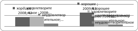 В данном исследовании настораживает то, что многие дети отмечают уже до занятий, что они мало отдохнули (надо заменить, что обследования проводились после выходного дня). Почти все дети, которые пришли в школу с хорошим настроением сохраняют его и после занятий. К сожалению, детей, пришедших в школу с большим желанием учиться, стало меньше (64% 2008 г. и 57 % в 2009 г.). А к концу дня этот показатель и снижается. Имеются дети, которые приходят в школу, испытывая недомогание. Хорошую переносимость занятий отмечают 50%детей, а остальные - удовлетворительную. А в 2009 г. 2 % детей отметили плохую переносимость занятий.