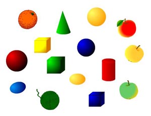 Если ребенок это замечает, рассматриваем следующие две группы, делая обобщение: "Это все кружки. Это все квадратики".