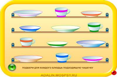 Детей приучают последовательно выделять и сравнивать однородные свойства вещей. («Что это? Какого цвета? Какого размера?») Сравнение проводится на основе практических способов сопоставления: наложения или приложения.