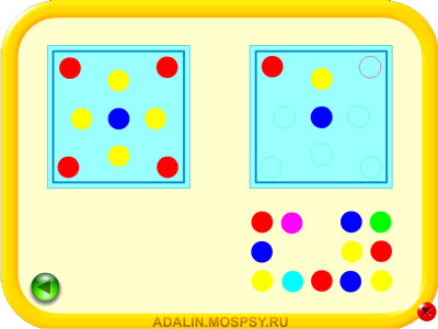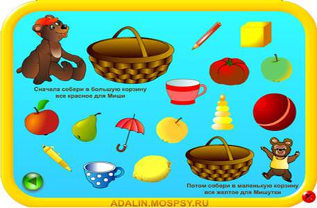 Если ребенок при этом учитывает не только форму, но и цвет, это прекрасно, если нет, то это - третий этап усложненного задания (все это не следует делать в одном занятии).