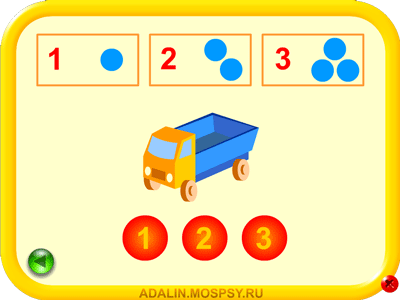Цель упражнения: обучение соотносить слово-числительное и соответствующее количество предметов.