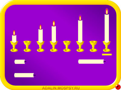 Цель занятия: Обучение детей сравнению предметов по длине приемом приложения. Сравнение множеств способом взаимно - однозначного соответствия.