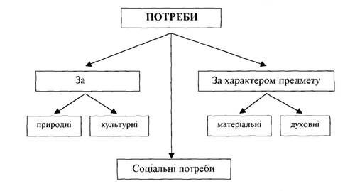 Таким чином, основними характеристиками людських потреб є їх сила, періодичність виникнення, спосіб задоволення, а також предметний зміст потреби, тобто сукупність тих об'єктів матеріальної і духовної культури, за допомогою яких дана потреба може бути задоволена.