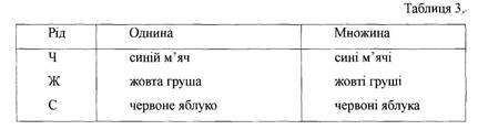 Робиться висновок, що закінчення прикметників різні, бо різний рід іменників, які з ними зв'язані. Учні порівнюють рід іменників і прикметників.
