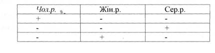4. Гра "Наш рід". Учитель включає магнітофон із словосполученням іменника і прикметником. У відповідь сигналізує той ряд, що має відповідні карточки: "чол.р.", "жін.р.","сер.р.".