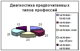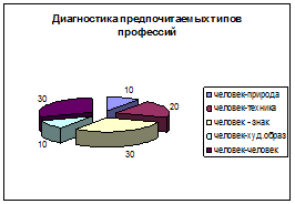 Благодаря переходу к рыночным отношениям расширился круг выбора профессии. Однако из-за недостаточной осведомленности у школьников складывается неправильное представление о многих из них. Случается так, что какой-то вид занятий может увлечь при более детальном ознакомлении с ним. Поэтому одна из основных задач — обратить внимание старшеклассников на те профессии, по которым бывают вакансии, как можно подробнее рассказать о них. Консультант помогает выбрать одно из направлений профессиональной деятельности ("человек—природа", "человек—техника", "человек—художественный образ", "человек—человек"), наиболее соответствующее его желаниям и склонностям. Именно направление, а не профессию. Затем идет совместное обсуждение перечня входящих в направление профессий [12, c.23].