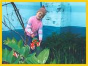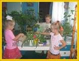 В младших группах дети с помощью взрослых кормят рыбок, поливают и моют комнатные растения, сажают луковицы, сеют крупные семена, принимают участие в сборе урожая со своего огорода, подкармливают зимующих птиц. Руководя трудом малышей, воспитатель называет растения, их части, производимые в труде действия; это расширяет детский словарь, активизирует его.