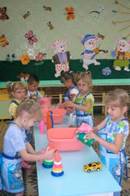 "Программа воспитания в детском саду" раскрывает объем трудовых навыков и умений, которыми должны овладеть дети каждой возрастной группы. Так, например, формируя у младших дошкольников навыки и умения хозяйственно-бытового труда, воспитатель учит их протирать игрушки влажной тряпкой, полоскать белье и т. п. В средней группе дети прополаскивают и отжимают тряпочку, которой протираются игрушки, намыливают кукольное белье, стирают его. Старшие дошкольники моют игрушки губкой с мылом, стирают мелкие вещи, готовят необходимое оборудование для занятий, труда, игры, приводят его затем в порядок.
