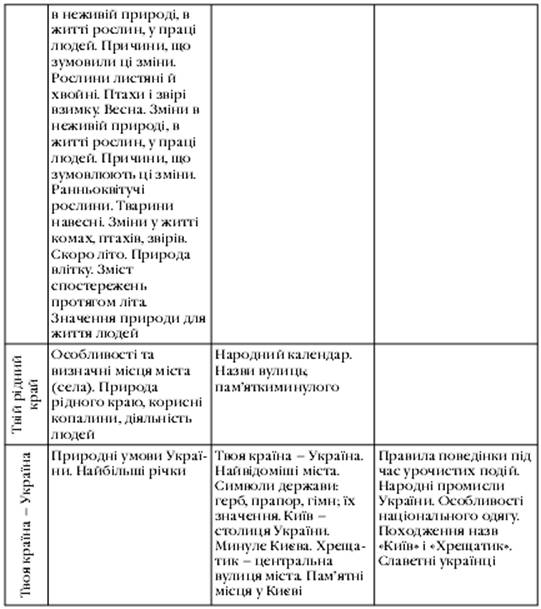 ПЛАНЕТА ЗЕМЛЯ - НАШ КОСМІЧНИЙ ДІМ Сонячна система Земля - планета Сонячної системи Як обертається Земля Як поверхня Землі нагрівається сонячними променями Як орієнтуватися на місцевості Як зображують місцевість на плані Як зображують поверхню Землі на глобусі і карті Материки Землі Океани Землі Населення Землі Збережемо природу Землі разом НАША БАТЬКІВЩИНА - УКРАЇНА Україна на планеті Земля Форми земної поверхні України Водойми України Природні зони України Мішані ліси Степи Південний берег Криму Гори Карпатські гори Кримські гори Населення України Охорона природи в Україні ТВІЙ РІДНИЙ КРАЙ Рідний край на території України Погода в рідному краї Корисні копалини в рідному краї Ґрунти в рідному краї Природні угруповання рідного краю Луки - природне угруповання Прісна водойма - природне угруповання Болото - природне угруповання Рослинництво в рідному краї Тваринництво в рідному краї Промисловість у рідному краї Охорона породи в рідному краї |