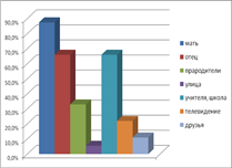Предпочтение того или иного родителя выражается в том, ближе к кому из родителей нарисовал себя ребенок, какое выражение лица прочитывается в фигурах родителей.