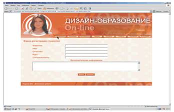 Вот мы теперь перешли на следующую страницу,(рис 1.2.) где пользователь (будущий студент сайта) заполняет анкету и оправляет её по нужному адресу и мы теперь переходим на главную страницу нажатием на изображение девушки.