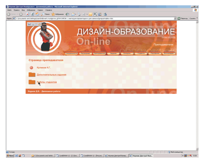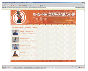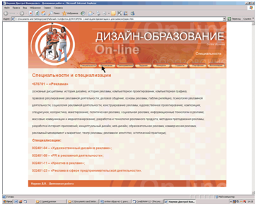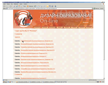 Предмет исследования: Дизайн образовательной on-lineоболочки кафедры рекламы и художественного проектирования.