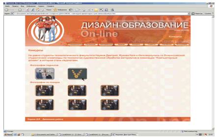 Мы перешли на страницу «конкурсы» (рис 1.12.)где располагаются фотографии и информация по проходившим и прошедшим конкурсам. По своему выбору студент может нажать на фотографию и посмотреть её в увеличенном виде. Нажимая на фотографию, он переходит на следующую страницу, где он будет её наблюдать в увеличенном виде.