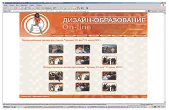Мы перешли на страницу «фотогаларея» (рис 1.16.) на ней находятся фотографии с различных поездок студентов, фотографии после выпускных, и просто фотографии как отдыхают студенты. Пример: на странице располагаются фотографии с дизайн-фестивалей «Аркаим ХХIвек.» - 2006 г. и 2007 г.